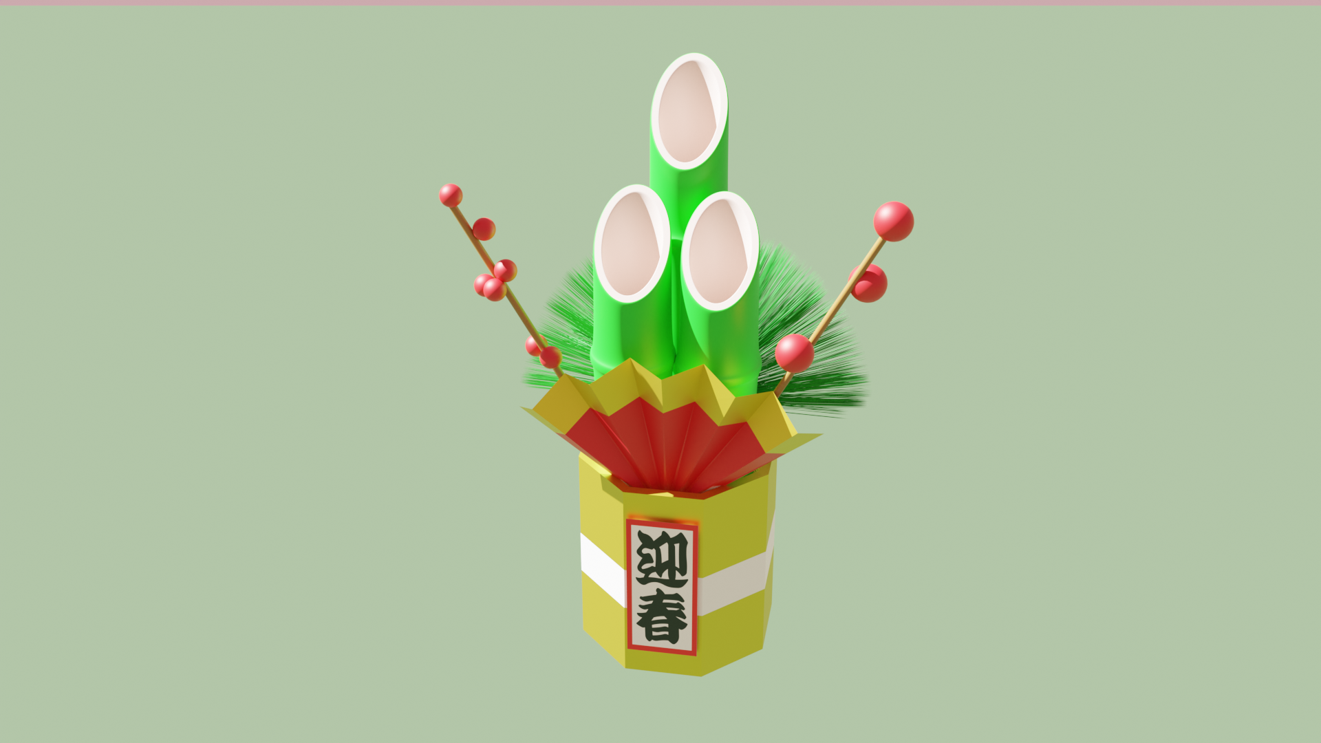 門松の竹の作り方と光るリンゴの光り方の技術をちょっと参考に作ってみました。